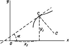 Эта задача графически может быть решена только приближенно, так как провести касательную в данной точке произвольной кривой можно лишь с очень ограниченной точностью. При таких построениях рекомендуется проводить вспомогательную нормаль СС, считая небольшой участок кривой вблизи точки (x 1, y 1) дугой конического сечения, в простейших случаях — окружности. Построение нормали можно выполнить несколько точнее.