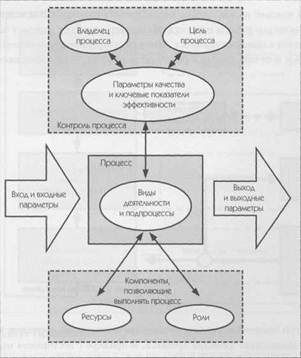 При организации работ в виде процессов не учитываются ни существующее распределение работ, ни деление организации на отделы. Это сознательный выбор. Делая выбор в пользу процессной структуры, можно доказать, что некоторые виды работ в организации не координируются, дублируют друг друга, игнорируются или вообще не нужны. Процесс — это логически взаимосвязанная между собой последовательность работ (видов деятельности), направленная на достижение поставленной цели. Вместо этого мы сосредотачиваемся на цели процесса и его взаимоотношениях с другими процессами. Процесс — это последовательность работ, нацеленная на преобразование входных данных (информации, документации и т. д.) в выходные. Для получения информации о том, каким будет результат выполнения процесса, нужно проверить вход и выход каждого процесса на соответствие характеристикам качества и стандартам. В результате этого получаются цепочки процессов, по которым можно отследить, что происходит в организации и какой результат получается, а также определить контрольные точки в этих цепочках, в которых выполняется мониторинг качества продуктов и услуг, предоставляемых организацией. Стандарты для выходных данных каждого процесса должны быть определены таким образом, чтобы вся цепочка процессов обеспечивала достижение корпоративных стратегических целей. Если результат процесса отвечает заданному стандарту, такой процесс будет считаться эффективным (effective). Если работы в рамках данного процесса к тому же выполняются с наименьшими усилиями и затратами, этот процесс будет рациональным (efficient)2. Цель Управления Процессами — планировать и контролировать процессы таким образом, чтобы они были одновременно эффективными и рациональными.