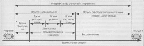 • Возникновение инцидента: время, когда пользователь узнал о сбое или когда сбой был обнаружен • Обнаружение: поставщик сервиса проинформирован о сбое. Инцидент получает статус «Сообще- • Реагирование: поставщику сервиса необходимо время, чтобы прореагировать на инцидент. Это • Ремонт: поставщик сервиса восстанавливает компоненты, которые вызвали сбой. • Восстановление сервиса: сервис восстановлен. При этом выполняются такие работы, как конфи-