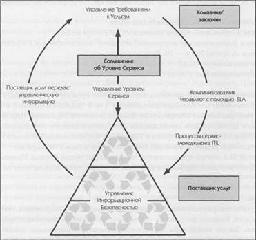 Эти бизнес-процессы зависят от ИТ-услуг, а поэтому и от ИТ-организации. Заказчик определяет требования к безопасности (требования к информационной безопасности SLA на рис. 15.3 отсутствуют) на основе анализа риска. На рис. 15.4 показано, как определяются элементы безопасности SLA.