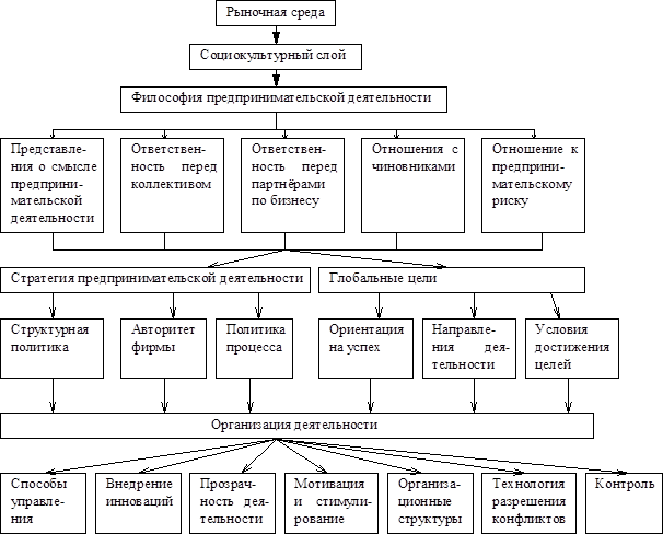 В сфере бизнеса человек играет активную роль. Главным субъектом рынка является предприниматель. Процесс становления и укрепления бизнесс-класса весьма затруднен действием рассмотренных выше факторов. Рынок воздействует на все стороны жизнедеятельности человека. Под его активным влиянием меняется вся система целей и экономических стимулов, политические и нравственные критерии, психология, мораль. Все это непосредственно влияет на сознание и поведение предпринимателя и наемного работника. В последние годы прослеживается явная тенденция к изучению и внедрению в нашей стране американского и японского менеджмента. Если американский менеджмент нацелен на личную карьеру, индивидуализм, строгую расчетливость и максимизацию прибыли, то японский — на коллективную, групповую работу, основанную на организованности, опрятности, чистоте, чистоплотности и дисциплине[14]. Деятельность японских управляющих, по мнению специалистов, ближе к российскому менталитету и практике работы наиболее процветающих российских фирм. Зарубежный опыт современного предпринимательства показывает, что значительная часть предпринимателей ориентируется не на прибыль, а на возмещение расходов и получение наибольшего социально-экологического эффекта, занимаясь бесприбыльной деятельностью. Причем в результате отделения капитала-функции от капитала-собственности из общей массы субъектов бизнеса в настоящее время выделяются единоличные (полные) и коллективные (частичные) собственники, менеджеры, уполномоченные; физические лица, занятые производственным, коммерческим и инновационным предпринимательством. Поэтому рынок субъектов бизнеса достаточно сложен и многоаспектен. Но, несмотря на многоликость проблем российского бизнеса, мы являемся свидетелями, когда в нашу жизнь прочно вошли понятия бизнес, менеджмент, культура, и мы чувствуем и ощущаем их тесное взаимопроникновение и взаимодействие. Современный менеджмент приобретает сегодня черты технологии социокультурного нововведения, т.к. он зависит от внутренних и внешних факторов среды, которые являются носителями определенной культуры общества и фирмы. Речь идет о новой для нас философии и политике управления в новых рыночных отношениях. Внедрение современных персонал-ориентированных технологий процесс объективный, он предопределен логикой развития рынка, культуры, предпринимательства и менеджмента, а следовательно, не только экономическими, но и культурологическими закономерностями. Вопросы и задания