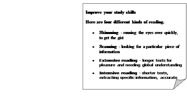 Improve your study skills Developing reading strategies Before you read a text, you should be aware of which type of reading you are going to do. You will have to decide what your purpose is when reading a certain text. Becoming aware of this fact will help you to both focus on the important points and reach your goal.