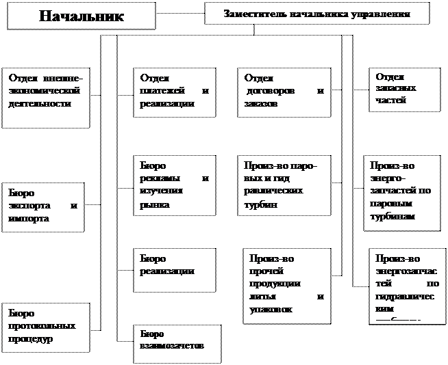 Рисунок 1.2. – Схема управления ОАО «Турбоатом» Управление маркетинга строит свою работу в непосредственном контакте со всеми подразделениями ОАО «Турбоатом», которые занимаются проектированием, изготовлением и реализацией продукции (рисунок 1.2). Начальник управления маркетинга решает вопросы, связанные с заключением договоров и контрактов на внутреннем и внешнем рынках с заказчиками на поставку продукции, изготавливаемой предприятием, предоставление услуг и импорта товаров, необходимых для производственной деятельности, и выполняет действующую в НПО «Турбоатом» «Систему управления качеством по модели стандарта ИСО 9001:2008» Первичный аудит на "Турбоатоме" проходил в 1996 году и уже на протяжении 17 лет предприятие подтверждает соответствие системы менеджмента качества требованиям международного сертификата качества ISO 9001:2008. На предприятии действует программа повышения качества выпускаемой продукции, рассчитанная до 2015 года.