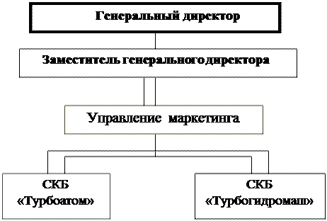 Существующая структура управления предприятием не соответствует его стратегическим задачам. Первым заместителем генерального директора является главный инженер, а не маркетинг-директор, служба маркетинга не координирует всю деятельность Объединения, существует высокая степень централизации управления, отсутствует возможность обеспечения гибкости производства. Схема управления маркетингом представлена на рисунке 1.1