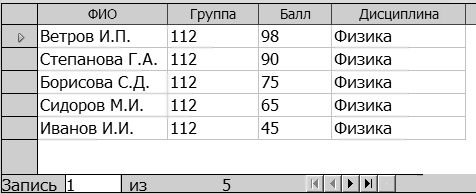 Рис. 30. Результат запроса примера 3 7. Закройте окно построителя запросов и в появившемся окне сохранения запроса задайте ему имя Пример3.