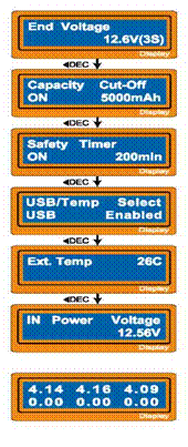 Текущее напряжение на входе от источника DC. Используя специальный соединительный кабель для батареи, Вы можете наблюдать индивидуальное напряжение каждой ячейки в заряжаемой батарее. Присоединяя кабель к порту на правой стороне зарядного устройства, программа показывает напряжение каждой ячейки (максимально 6). Чтобы использовать эту возможность для заряжаемой батареи, необходимо иметь разъем, который соединяет каждую ячейку.