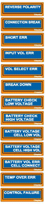 В случае возникновения обрыва между батареей и выходом зарядника или принудительным разъединением выводного провода зарядки во время процесса зарядки или разрядки на выходе будет показана такая надпись. Произошло короткое замыкание на ВЫХОДЕ!!!. Пожалуйста проверьте выводные провода.