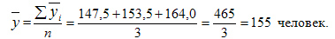 Заметим, что средняя списочная численность работников предприятия за 1 квартал, вычисленная по формуле средней хронологической на базе данных на 1 число каждого месяца и по средней арифметической — по данным производного ряда — равны между собой, т.е. 155 человек. Сравнение расчетов позволяет понять, почему в формуле средней хронологической начальный и конечный уровни ряда берутся в половинном размере, а все промежуточные уровни берутся в полном размере. Ряды средних величин, производные от моментных или интервальных рядов динамики, не следует смешивать с рядами динамики, в которых уровни выражены средней величиной. Например, средняя урожайность пшеницы по годам, средняя заработная плата и т.д.