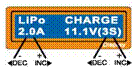 Литиевая батарея (Lilo/LiPo/LiFe) программа Эти программы являются только подходящими для Литиевых батарей с номинальным напряжением 3.3V, 3.6V и 3.7V в ячейку. Эти батареи должны использовать различную технику зарядки, названную – метод с постоянным напряжением(CV) и постоянным током (CC). Ток зарядки изменяется согласно ёмкости батареи и свойствам её. Заключительное напряжение процесса заряда также очень важно; это должно быть точно согласовано с напряжением ячеек батареи. Они 4.2V для LiPo, 4.1V для Lilo, и 3.6 В для LiFe. Ток зарядки и номинальное напряжение что касается комплекта счета ячейки на программе засыпки должны всегда быть правильными для батареи, которую будут питать. Когда Вы желаете изменить значение параметра в программе, жмите Start/Enter клавишу заставлять её мигать, после - измените значение ключом INC или DEC. Значение будет сохранено нажимом Start/Enter клавиши единыжды! Га! Зарядка Литиевой Батареи