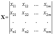 (7.1) Строки такой матрицы соответствуют результатам регистрации всех наблюдаемых параметров объекта в одном эксперименте, а столбцы содержат результаты наблюдений за одним параметром (фактором, вариантой) во всех экспериментах. Обозначим количество параметров через т (т >1), а количество наблюдений – через п. В матрице элемент хij соответствует значению j -й варианты в i -м наблюдении. Матрица, вообще говоря, может содержать пустые значения некоторых элементов, например, из-за пропусков в регистрации значений параметров. В многомерном анализе желательно устранить пропущенные значения. Для этого существуют специальные приемы, в частности, вычеркивание соответствующих строк матрицы или занесение средних значений вместо отсутствующих. В дальнейшем будем считать, что матрица не содержит пустых элементов, а параметры объекта характеризуются непрерывными случайными величинами. Методы обработки матрицы ЭД основаны на следующем предположении: если объект подвергнуть новому обследованию и получить, вообще говоря, другую матрицу данных, то после ее обработки с помощью тех же методов будут получены результаты, близкие к результатам обработки первой матрицы. Данное предположение основано на статистической гипотезе формирования матрицы ЭД. Матрица порождается случайным образом в соответствии с определенной вероятностной закономерностью, а именно: в т -мерном пространстве параметров существует некоторое (пусть и неизвестное) распределение вероятностей, и каждая строка матрицы появляется в соответствии с этим распределением независимо от появления других строк. Каждый столбец матрицы представляет собой случайную выборку значений одного параметра объекта. Указанное предположение означает, во-первых, что оценки моментов и параметров распределения, вычисленные по выборке, будут близки к истинным значениям, во-вторых, значения непрерывных функций, построенных по этим оценкам, будут близки к значениям функций, построенным по истинным значениям параметров. Таким образом, объектом исследования в многомерном анализе является многомерная случайная величина, представленная выборкой конечного объема. К такой выборке применимы все методы и оценки, рассмотренные при обработке одномерных ЭД. Конечно, приведенные суждения не являются доказательством допустимости применения рассматриваемых методов, но вполне подтверждаются практикой. Параметры, характеризующие объект исследования, имеют разный физический смысл, и матрица данных существенно изменяется, если изменяются шкалы, в которых измеряются те или иные параметры. Матрицу данных еще до проведения анализа целесообразно привести к стандартному виду, т.е. стандартизовать значения вариант (напомним, что среднее значение стандартизованной варианты равно нулю, дисперсия – единице). В тех случаях, когда все варианты измеряются в одной шкале, это преобразование все-таки желательно, ибо оно упрощает последующие преобразования. Стандартизованную матрицу будем обозначать через U. Переход от исходной к стандартизованной матрице осуществляется следующим образом: вычисляются оценки математического ожидания вычисляются элементы стандартизованной матрицы