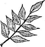 Ясень. У него очень характерные крупные непарноперистые супротивные листья, а плод - крылатка, то есть орешек с длинным узким крылом. Дерево это высокое, стройное, с длинными ветвями и светлой кроной. Твердая и упругая древесина используется очень широко, а в лесу из нее можно сделать очень хорошие рукояти для инструментов.