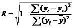 Индекс детерминации. Индекс детерминации характеризует, на сколько процентов построенная модель регрессии объясняет вариацию значений результативной переменной относительно своего среднего уровня, т. е. показывает долю общей дисперсии результативной переменной, объяснённой вариацией факторных переменных, включённых в модель регрессии.