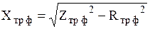 де Uк – напруга короткого замикання трансформатора, %; U2н – номінальна напруга фази вторинної обмотки трансформатора, В. Значення індуктивної складової опору Хтр ф визначається повним опором фази Zтр ф та активним опором фази Rтр ф