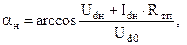 де W кутова частота напруги мережі живлення, с-1. Кут вмикання тиристорів у номінальному випрямляючому режимі визначається з рівнянь