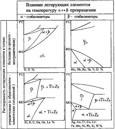 Рис.21.1. Влияние легирующих элементов на полиморфизм титана: