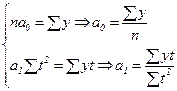 где n – количество уровней ряда; t – порядковый номер в условном обозначении периода или момента времени; y – уровни эмпирического ряда. Эта система и, соответственно, расчет параметров При таком порядке отсчета времени (от середины ряда)