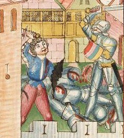 Красочное изображение тренировок германских рыцарей (сер. 15 в.), включает в себя борьбу, битву на шестах, поднятие камней и фехтование мечом и баклером. В Der Freydal (1500) император Максимиллиан I изображен фехтующим даже в полной броне. Triumphzug Максимиллиана I также изображает стражников в его процессии вооруженными баклерами и длинными мечами.