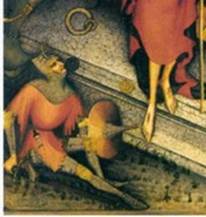Наряду с длинным мечом, который использовался в пешем бою, конные рыцари часто изображались с короткими мечами и даже луками (хотя ни на этом, ни на других подобных изображениях щитов не видно). Даже сам св. Георгий на рисунках 15 и 16 веков показан в образе крылатого ангела в золотых доспехах с мечом и баклером или в виде рыцаря в пластинчатом доспехе опять же с мечом и баклером. На картине Судного дня 1452 года работы Петруса Критуса (в Gemaldegaleie, Staatlide museen, Берлин) архангел Гавриил в полном доспехе, вооруженный мечом и баклером, бьется с демонами.
