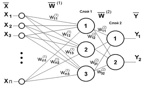 Рис. 6.18. Структура двошарового нейронного персептрона