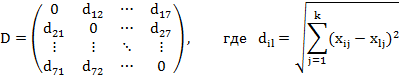 Матрица расстояний на первом шаге выглядит так: