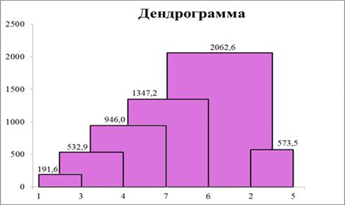 А результаты группирования данных в однородные группы, можно предствавить в виде дендрограммы: