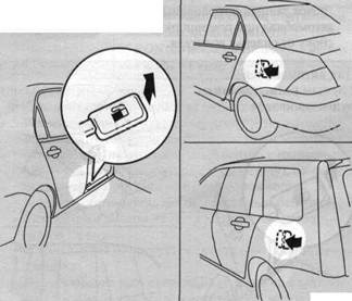 • Бензин - это легко воспламеняемое и взрывоопа с бензином вы можете получить тяжелые ожоги или травмы. Перед тем, как заливать бензин в топливный бак, заглушите двигатель. Убедитесь, что поблизости нет открытого пламени и искр. Не курите во время заправки автомобиля топливом. Все операции, связанные с топливом, необходимо выполнять вне помещений, в хорошо вентилируемых местах. • Перед тем, как снять крышку заливной горлови В противном случае этот заряд может создать искру, которая воспламенит нары топлива. • Выполняйте всю процедуру заправки топливом