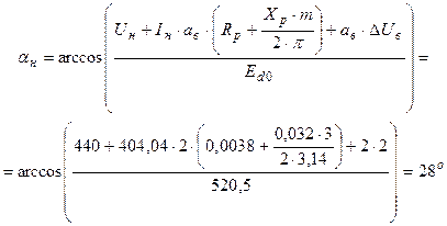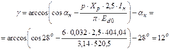 tвыкл=100 мкс – время выключения тиристора Т123–500; Da=3о – допустимая асимметрия импульсов. Угол коммутации при