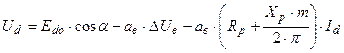 Внешняя характеристика тиристорного преобразователя Ud=¦(Id) при a=const (одной выпрямительной группы) в режиме непрерывного тока в соответствии со схемой замещения реверсивного тиристорного преобразователя (рис. 3.8.) может быть представлена следующим уравнением: