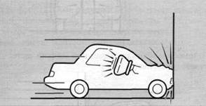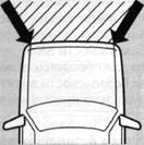 со скоростью не менее 25 км/ч (приблизительно). При ограниченном по силе ударе автомобиля спереди в зоне, ограниченной стрелками.