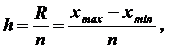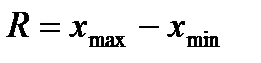 Размах вариации – простейший показатель, разность между максимальным и минимальным значениями признака.