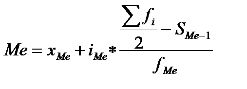 б) В интервальном ряду распределения медиана рассчитывается по следующей формуле: