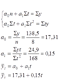 Для упрощения расчета параметров уравнения вводятся показатели времени t, которым придают такие значения, чтобы их сумма была равна нулю.