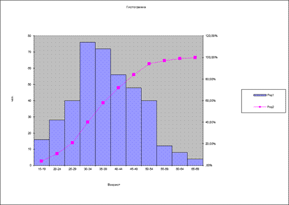 Рисунок 1 – График – диаграмма распределения числа безработных по возрасту