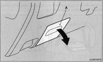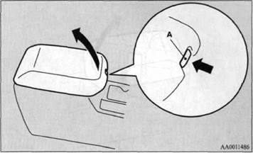 Чтобы открыть верхнее отделение вещевого ящика, потяните за фиксатор (А) и поднимите крышку.