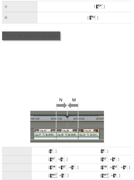 A basic rule for trimming by shortcut key is to select a track containing a clip to be trimmed and to move the timeline cursor to a target position in advance. Ripple trim is available with the ripple mode off, by shortcut key.