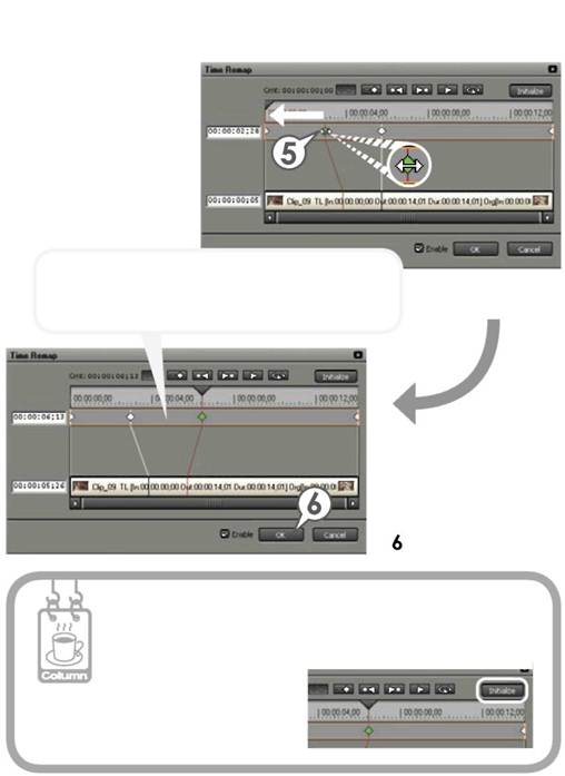 Time Remap – функция для изменения скорости воспроизведения части фильма, например одной сцены для её смыслового выделения. Определите рамки и отрегулируйте сцену между ними. Если сцена между рамками сужена для увеличения скорости, другие сцены расширяются и их скорость замедляется. Общая длинна фильма остаётся неизменной.