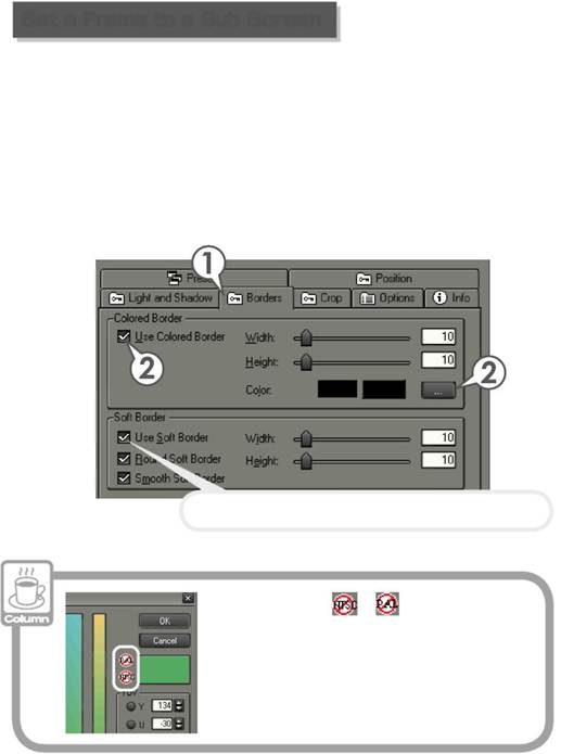 Цветная рамка может быть установлена в субэкране. Рамка субэкрана может быть окрашена для подчеркивания движения субэкрана.