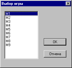 Если ведется одновременно несколько игр (групп команд), то одну из них можно выбрать для администрирования или удаления в главном меню (пункты Открыть и Удалить). Тогда в отдельном окне появится список текущих игр, одну из которых можно выбрать: