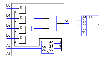 Мультиплексор ─ комбинационное устройство, предназначенное для подключения одного из n информационных входов к единственному выходу. Помимо информационных входов мультиплексор имеет адресные входы, на которые подается в параллельном коде адресное слово. Между количеством информационных входов и разрядностью адресного слова существует однозначное соотношение