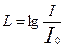 где Для воздуха Величины звукового давления и интенсивности, с которыми приходится иметь дело на практике, изменяются в очень широких пределах: по давлению в 108 раз, по интенсивности – до 1016 раз. Согласно биологическому закону Вебера – Фехнера, выражающего связь между изменением интенсивности раздражителя и силой вызванного ощущения, реакция организма прямо пропорциональна относительному приращению раздражителя. Для характеристики интенсивности звуков или шума принята измерительная система, учитывающая логарифмическую зависимость между раздражителем и слуховым восприятием – шкала логарифмических единиц, в которой каждая последующая ступень звуковой энергии больше предыдущей в 10 раз. Например, если интенсивность звука больше последующего в 10, 100, 1000 раз, то по логарифмической шкале она соответствует увеличению на 1, 2, 3 единицы. Логарифмическая единица, отражающая десятикратную ступень увеличения интенсивности звука над уровнем другого называется б елом. Весь диапазон энергии, воспринимаемый слухом как звук, укладывается в 13÷14 Б. Для удобства пользуются не белом, а единицей в 10 раз меньшей - децибелом (дБ), которая соответствует приблизительно минимальному приросту звука, различаемому ухом. В связи с этим введены логарифмические величины – уровни звукового давления и интенсивности: