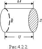 Прикладемо до провідника, довжина якого l і площа поперечного перерізу S, напругу U (рис. 4.2.2). При цьому в провіднику виникне електричне поле, напруженість якого