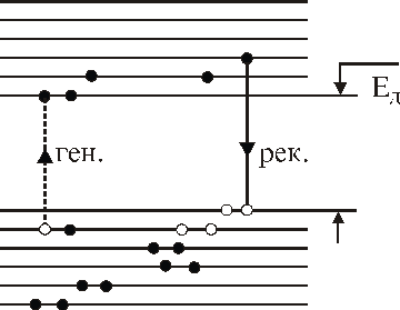Перехід електрона в зону провідності потребує додаткової енергії Ед. Оскільки в результаті цього з’являються два носії, то енергія Е, яка необхідна для генерації (утворення) одного носія дорівнює Відповідно