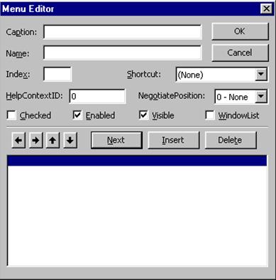 Средствами Visual Basic можно создавать, преобразовывать и уничтожать меню не только в режиме проектирования, но и в режиме работы. Кроме обычных меню Visual Basic умеет создавать и так называемые контекстные меню (что это такое, рассказано в 3.5). Ни на том, ни на другом я не буду останавливаться.