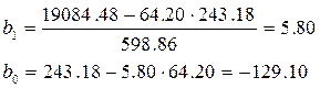 Оценка параметра b 1 может быть определена через коэффициент корреляции (см. пункт «Корреляционный анализ»):