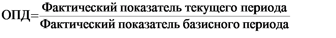 Относительные показатели представляют собой результат деления одного абсолютного показателя на другой. Относительные показатели выражаются в коэффициентах, процентах (%) или являются именованными числами (рублей/человека). Виды относительных показателей: 1. Относительный показатель динамики ОПД.