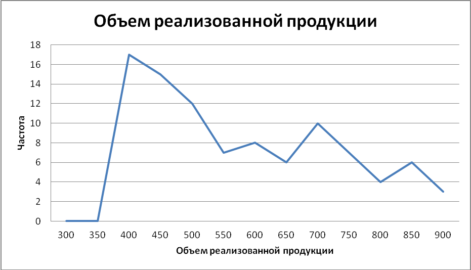2. Построить полигон распределения И, наконец, последнее. Эти же результаты, которые мы изобразили гистограммой, можно представить и в другой форме — в виде кривой частоты или полигона распределения. В этом случае график будет представлять собой ломанную линию, построенную на основание расчета среднеинтервальных значений, рассматриваемого массива. Делается это так: 1) поместить курсор в поле диаграммы, чтобы высветилась надпись «Область построения диаграммы» 2) щелкнем правой клавишей — появится контекстное меню, в нем выберем опцию Тип диаграммы, а затем на вкладке Стандартные, в категории Тип укажем График, после чего ОК. На рис.12 можно будет полюбоваться нашим новым компьютерным произведением.