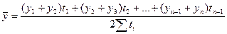 Для моментных рядов с неравноотстоящими датами средние уровни ряда определяются по формуле средней хронологической взвешенной