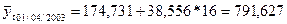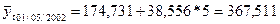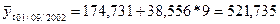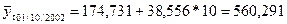 Несовпадение в равенстве на 0,001 тыс. руб. объясняется округлениями в расчетах. Параметр a0 показывает, что остатки вкладов отделения банка в среднем возрастали на 174,731 тыс. руб. в месяц.