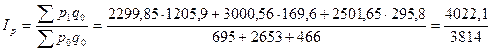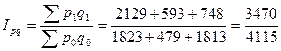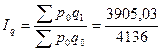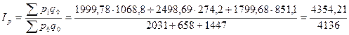 Определим сводный индекс физического объема проданных товаров.
