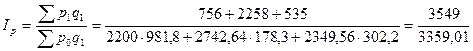 Вычислим индивидуальные индексы цен в мае по сравнению с апрелем: Яблоко: ip =2501,65: 2349,56=1,065 Говядина: ip = 2299,85: 2200 = 1,045; Баранина: ip = 3000,56: 2742,64 = 1,094;